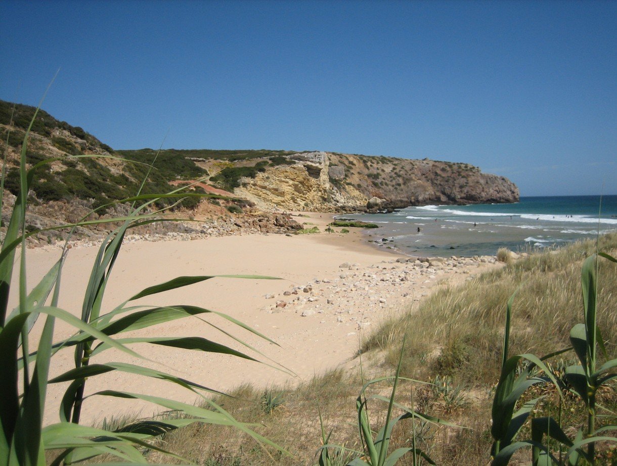 PRAIA DA CORDOAMA This is a very sandy beach, disappearing from sight both to the north and south. The highly shaped and progressively more hazy-looking cliffs provide a breathtaking view.