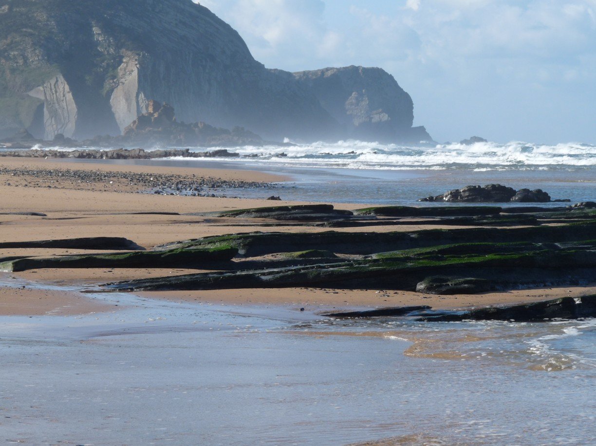 This is a very sandy beach, disappearing from sight both to the north and south. The highly shaped and progressively more hazy-looking cliffs provide a breathtaking view.