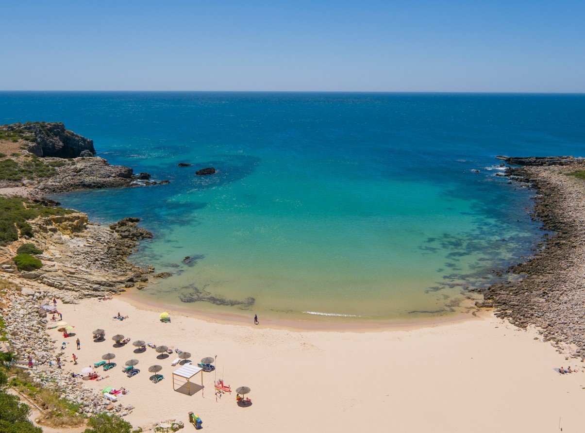 PRAIA DO BELICHE This beach is sheltered from the northerly and westerly winds, nestling in the wide cove formed by the headlands of Ponta de Sagres and Cabo São Vicente.